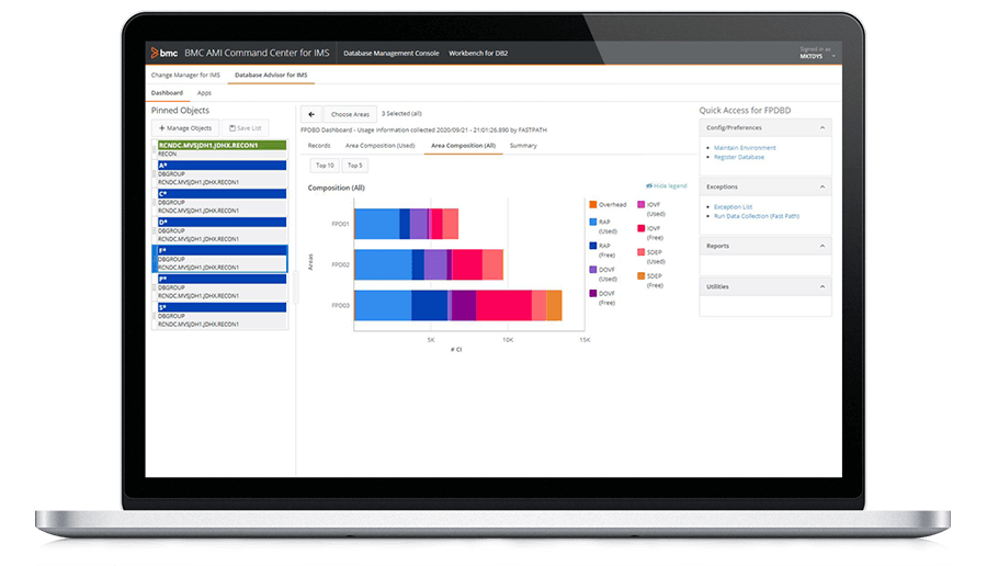 Streamline and automate database maintenance and changes, prevent unplanned outages, and avoid unnecessary (and costly) processing with BMC AMI Database Advisor for IMS, Catalog Manager for IMS, and BMC AMI Change Manager for IMS.